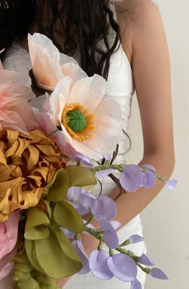 Ramos de novia con flores de tela hechas a mano, diseñados para durar y convertirse en un recuerdo para siempre.