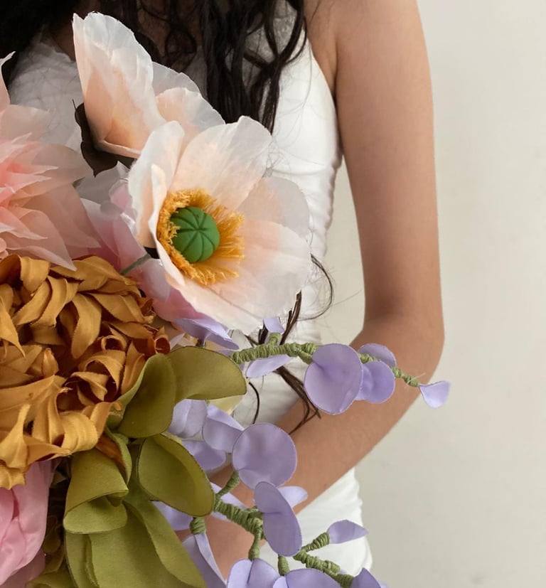 Todos los ramos están elaborados con flores de tela hechas a mano, diseñadas para verse y sentirse como flores naturales, con la ventaja de no marchitarse y durar toda la vida, aquí tienes más información de las flores https://www.instagram.com/floresquenuncasemarchitan/